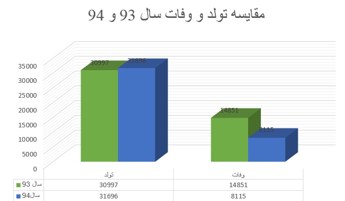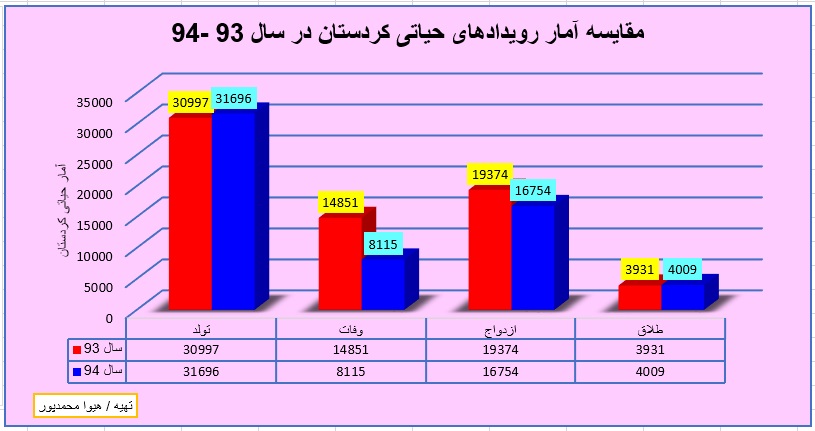 آمار رویداد های حیاتی استان کردستان در سال های ۹۴ و ۹۳
