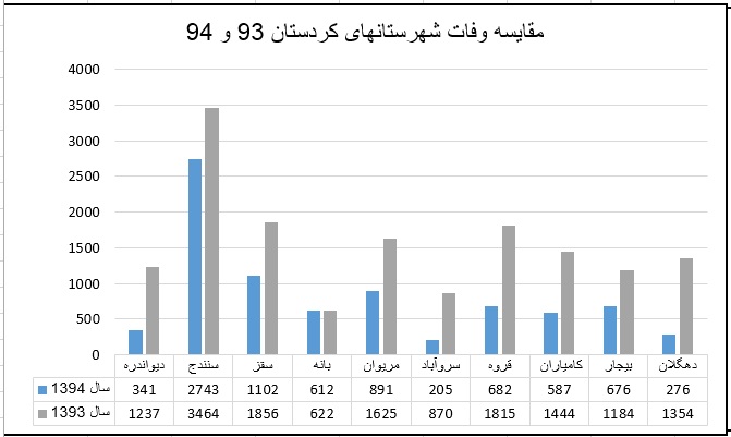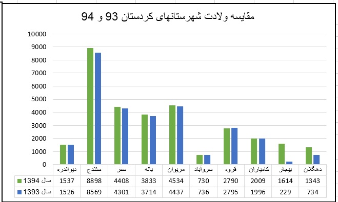 در این گزارش آمار رویدادهای حیاتی کردستان در سال‌های ۹۳ و ۹۴ با هم مقایسه شده است.
