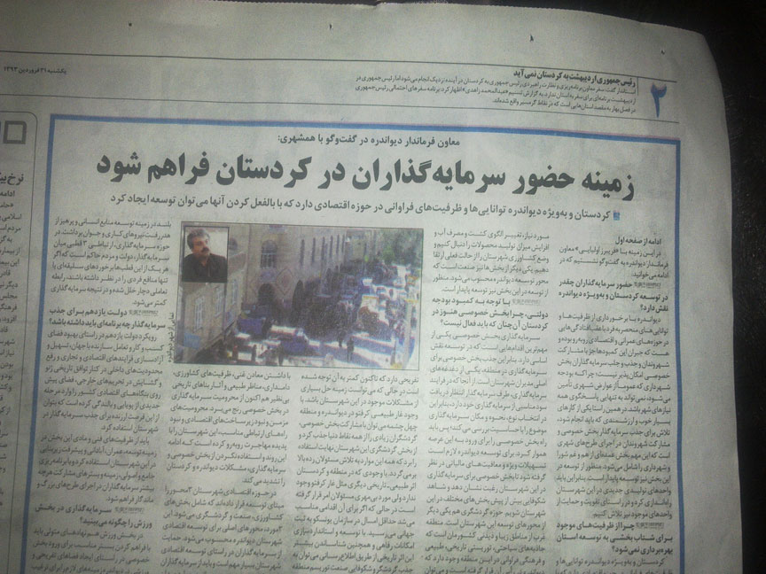 بررسی مشکلات دیواندره توسط روزنامه همشهری